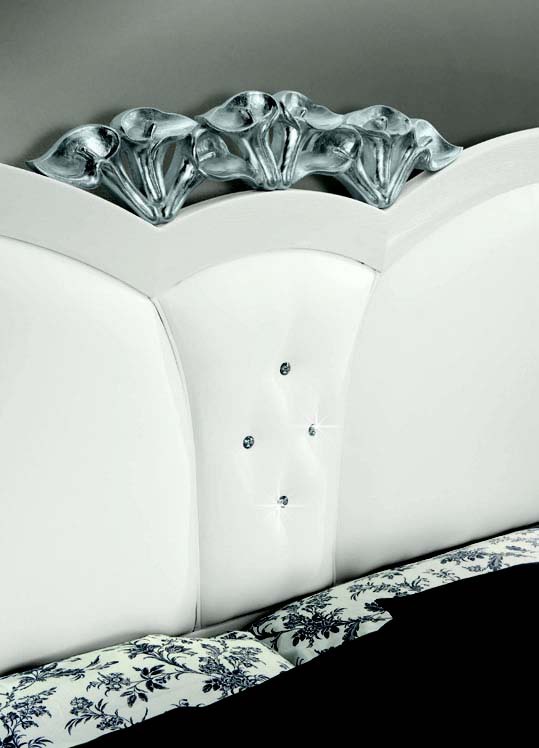 Bed in white lacquer and eco leather with Swarovski crystals Chantal, Arve Style