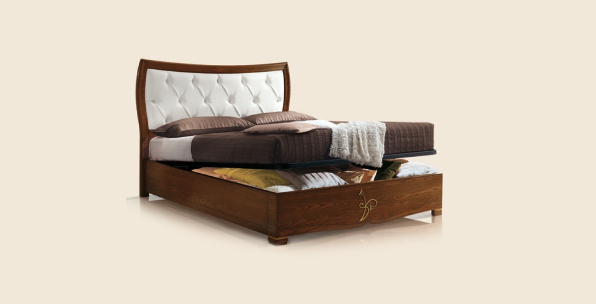 Chantal bed from Italian manufacturer Arve Style. Bed with high headboard in a soft upholstery made of eco-leather with with stitch-Capito. The base, the frame is made from solid wood. The finish is walnut veneer with a porous structure. The decor is a refined floral pattern in gold leaf. Bed Chantal will add in the bedroom interior refinement and sophistication. Also available model with drawer. The choice of a wide palette of shades.