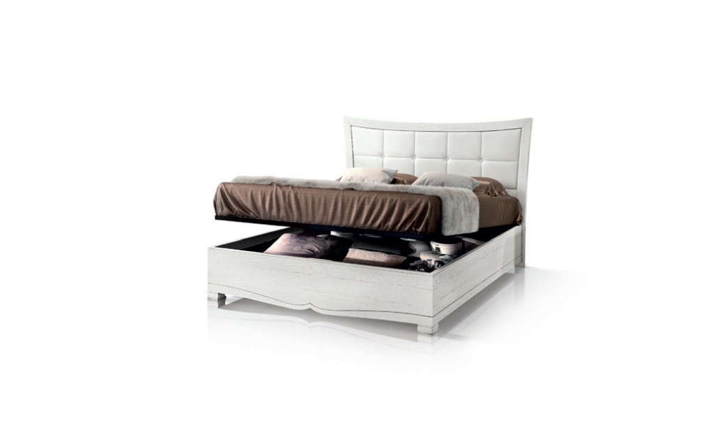Chantal bed from Italian manufacturer Arve Style. Bed with high headboard, upholstered in white eco-leather in a decorative stitch. The base, the frame is made of solid wood. Trim stands white lacquer with silver patina that gives the piece texture and depth. Also available model with drawer. Bed Chantal - the perfect choice for your stylish bedroom interior. The choice of a wide palette of shades.