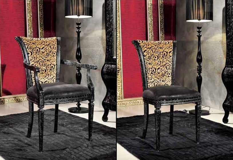 A chair from the Italian manufacturer Mirandola Export. Beautiful model has a wooden frame and upholstery of textile or leather to choose from. There is a version with or without armrests. The chair has a padded back the original shape and comfortable seat. Model to perfectly suit Your interior.