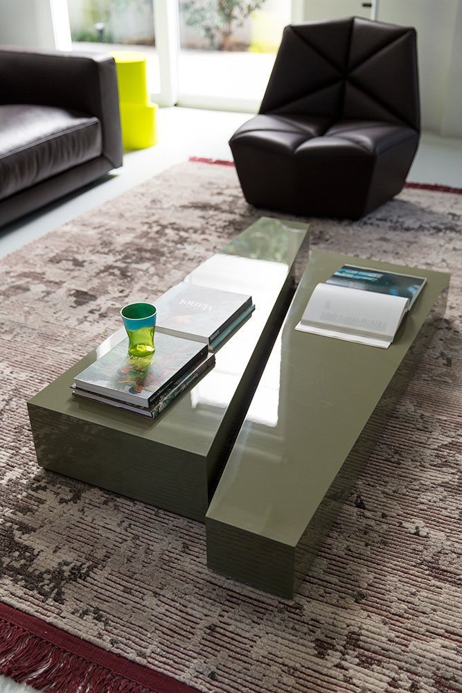 Hugo coffee table Italian producer Hugo. The presented model folding coffee tables consisting of two rectangular parts. The furniture is covered with varnish. Color scheme in grey and brown tones. The original solution to complement the interior living room.