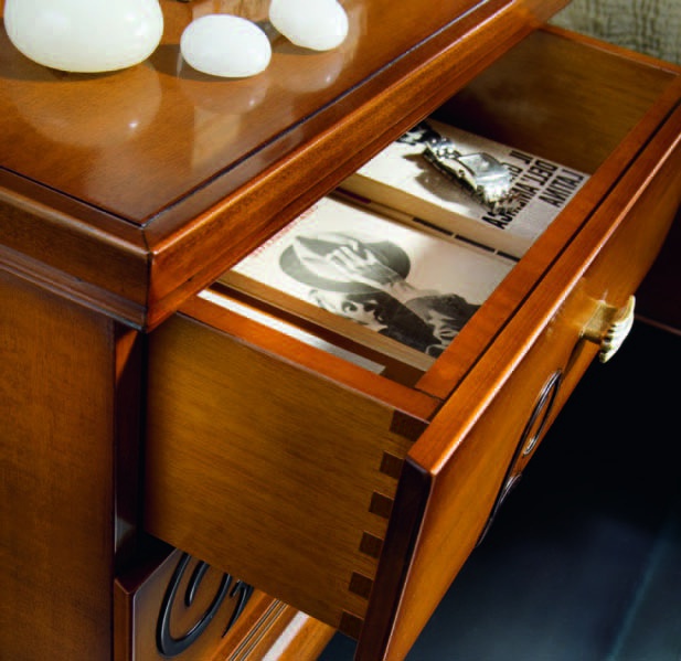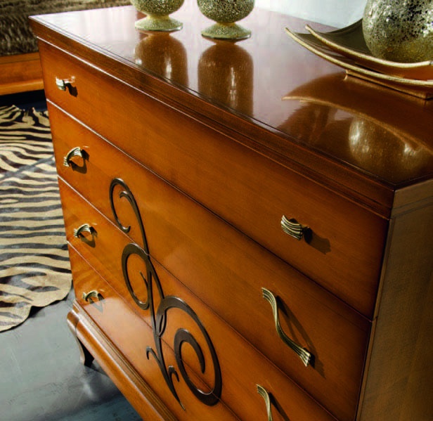 frame, base: solid wood veneer: walnut accessories: metal coating: lacquered decor: ornament |
