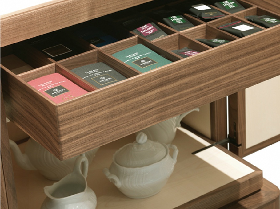 The buffet is Never full low Italian manufacturer Ceccotti. The case is American walnut, interior finish -maple. Model rectangular shape on low feet. Equipped with retractable drawers and shelves. The perfect choice for interior dining room in modern style. Colours in stock.