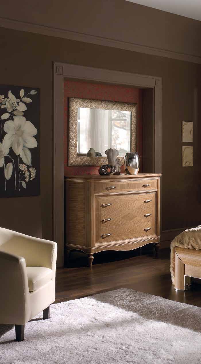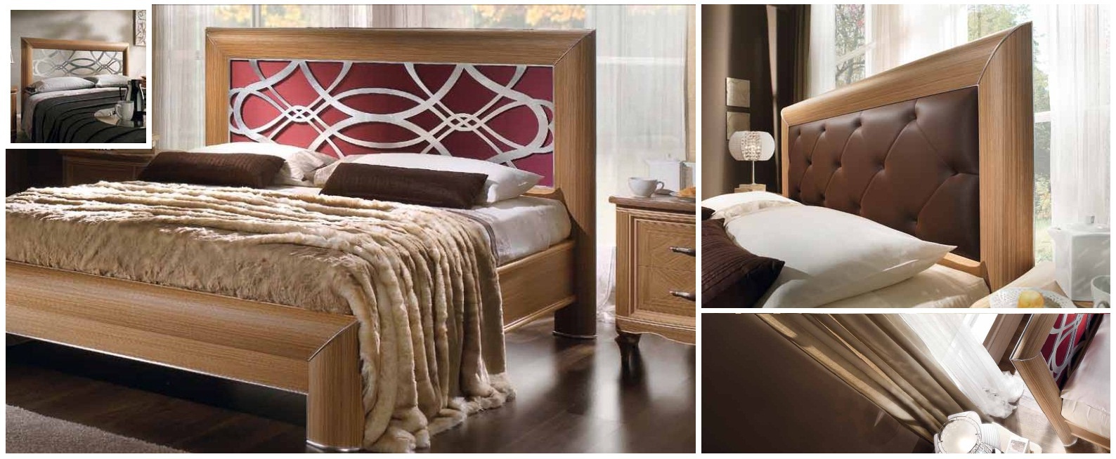 Set for Chanel's bedrooms from Italian manufacturer Arve Style. The set includes: double bed with 3 types of headboards, bedside tables, chest of drawers, a wall mirror in a gilded frame. The solid wood used for frame base, frame products. For the finishing of the veneer is selected from a range with a pattern of natural wood fibres. Set will perfectly fit in stylish bedroom with elegant interior.