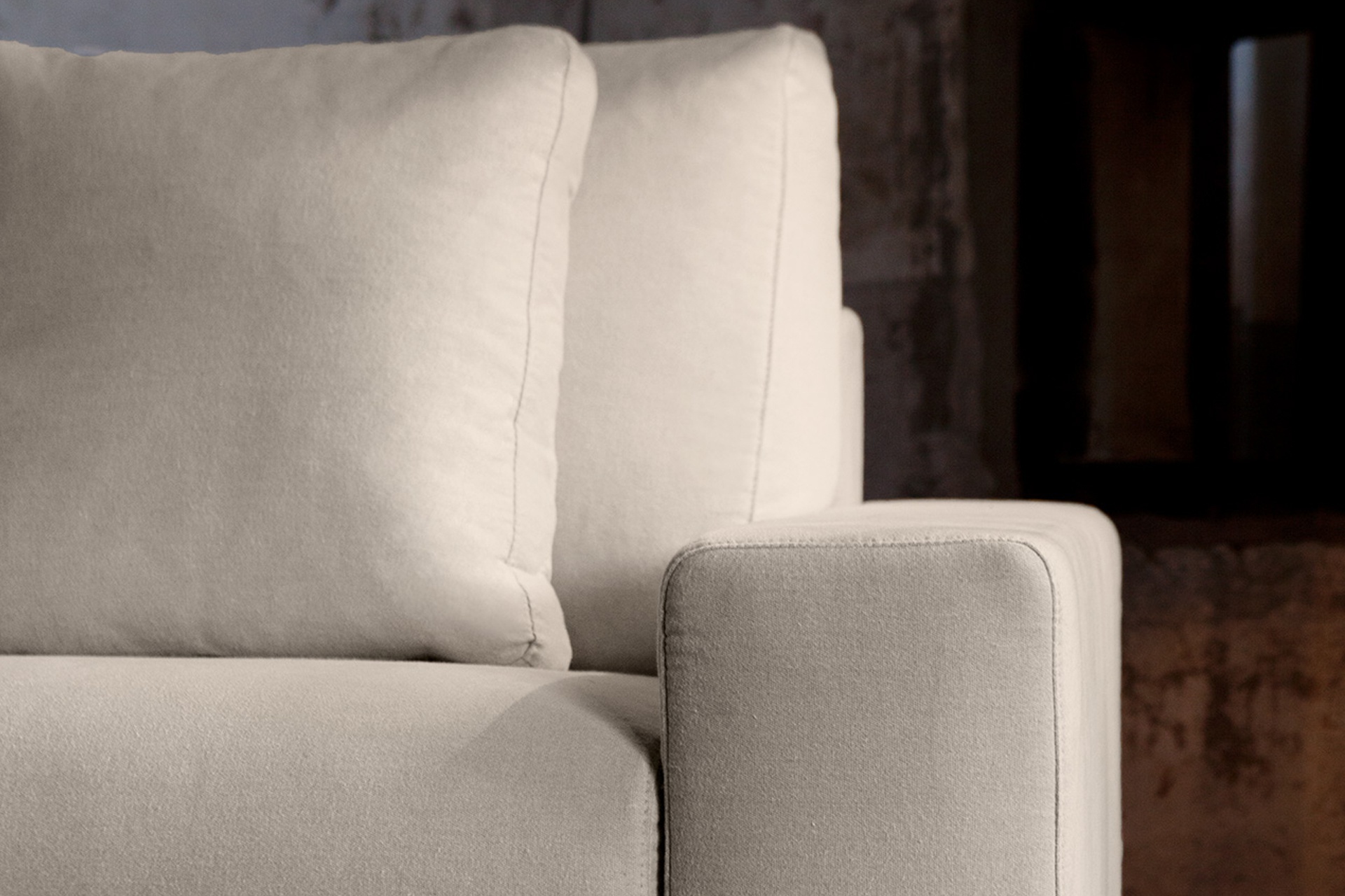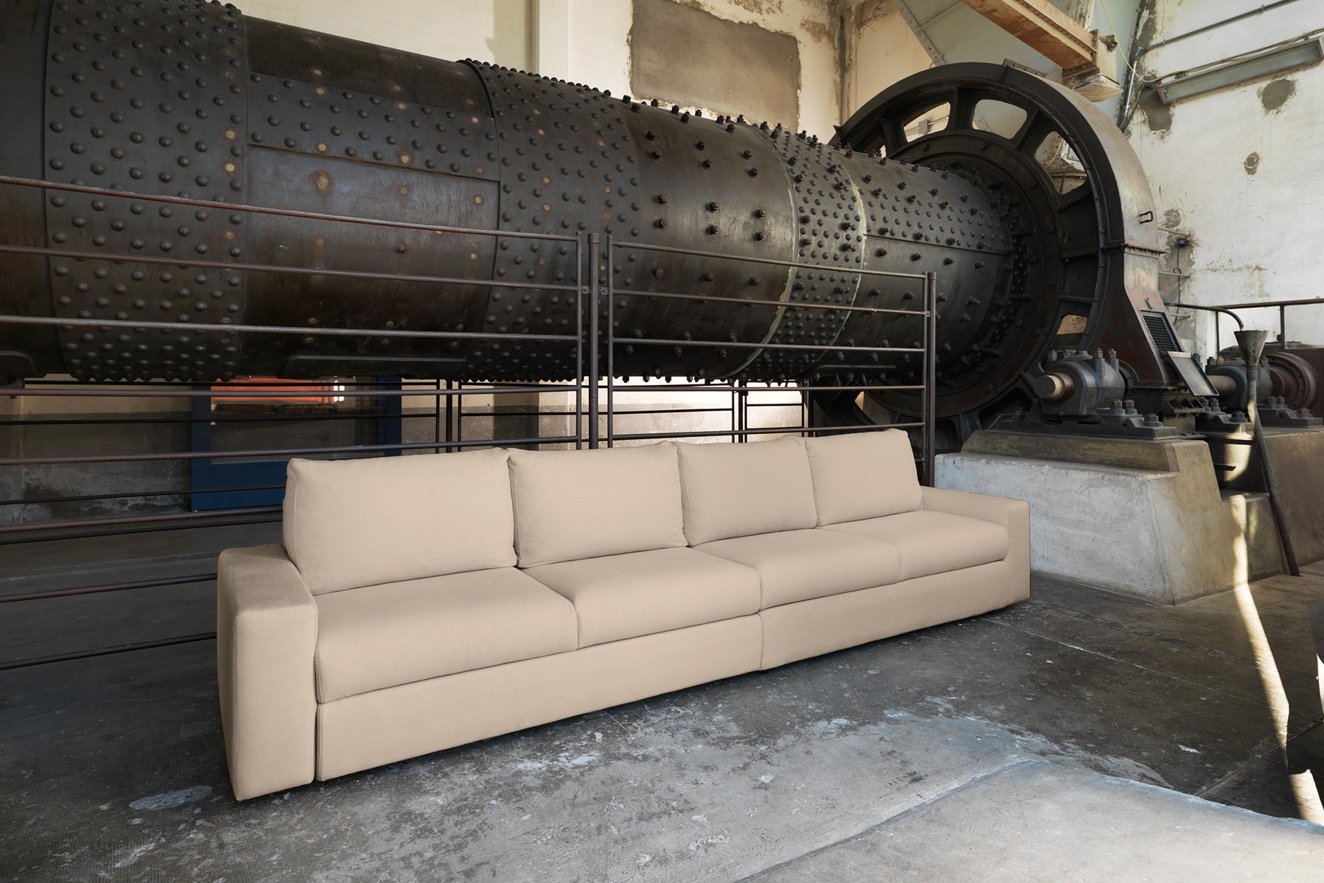 The modular sofa Glenn collection Home from the Italian manufacturer Domingo Salotti. The sofa is a modular system with completely removable elements and bayonet mounts. Made in a modern style. Modular systems do not have strictly defined configurations and are supplied by the customer. Some options presented in the photo gallery. Frame, coupling frame and broad armrests made of solid poplar or fir wood, upholstery - textiles plain and striped from the company portfolio. Filler - polyurethane foam of different density and Dacron; filler cushions - foam and feather. The system also has a corner version, a couch and also a sofa-bed; steel weld mesh in two additions, mattress height 12 cm filled with polyurethane foam in the case of cotton textiles. Colors to choose from a collection company.