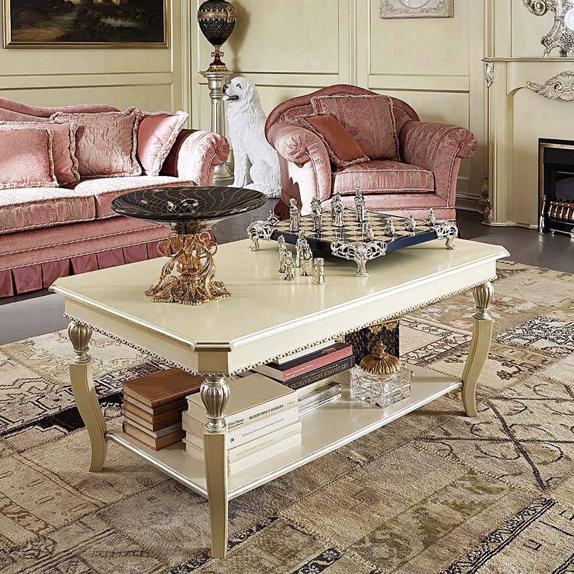 Coffee table from the Bella Vita Italian manufacturer Modenese Gastone. Legs, table top is solid wood. Wood processing is done manually. Finish - gloss lacquer. The model is made in Baroque style. Colours in stock.