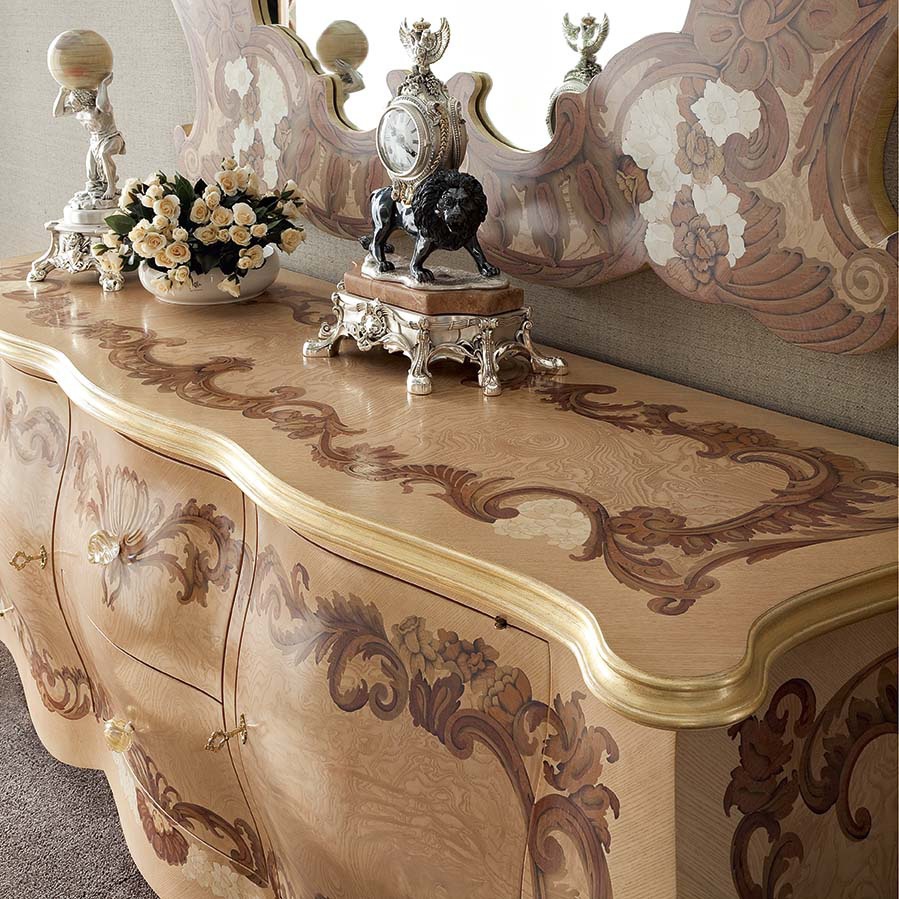 A snack bar from the Bella Vita Italian manufacturer Modenese Gastone. The case is solid wood. The surface is treated with lacquer. The model is made in Baroque style. Colours in stock.