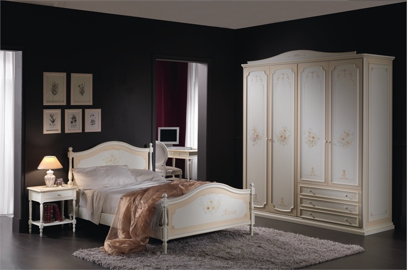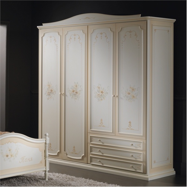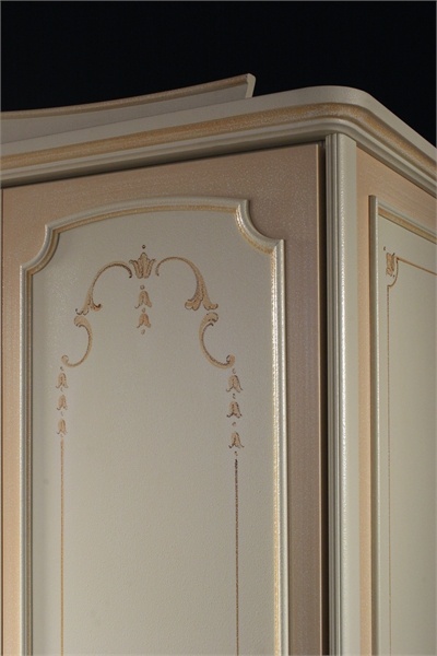 Wardrobe Armadio Tania from the Italian manufacturer Pellegattta. The number of sections and the arrangement at the request of the client: size of the section is a multiple of 50 and 100 cm from the Frame tamburino plates with cellular filling on the basis of solid spruce, the basement and the facade is an array of ramino. Narrow sash decorated with carved edging. Finishing is performed manually coloring in any colors from the range or by a given sample. The d?cor of paintings made in the technique of miniature used tempera, 6-8 colors, drawing from the catalog of the factory or on the customer's sketch. The surface is covered with a substance, which protects it from scratches and damages. The collection also includes bed, bedside Cabinet, computer writing Desk, chair.