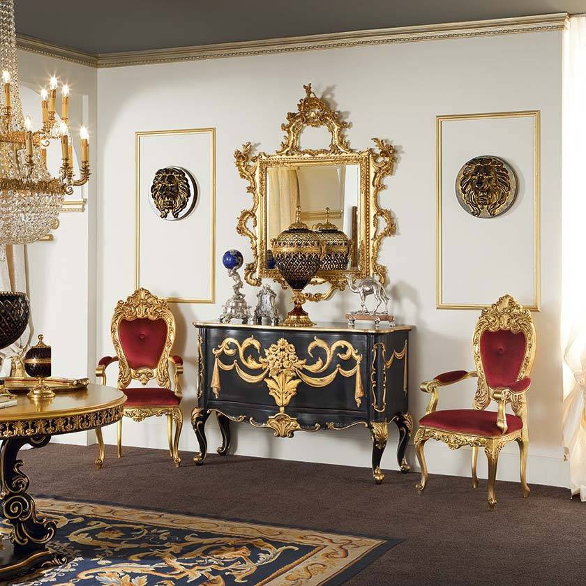 Dresser from the Bella Vita Italian manufacturer Modenese Gastone. The case is solid wood. Decorative elements hand-carved in gold-plated finish. The surface is treated with lacquer. The model is made in Baroque style. Colours in stock.