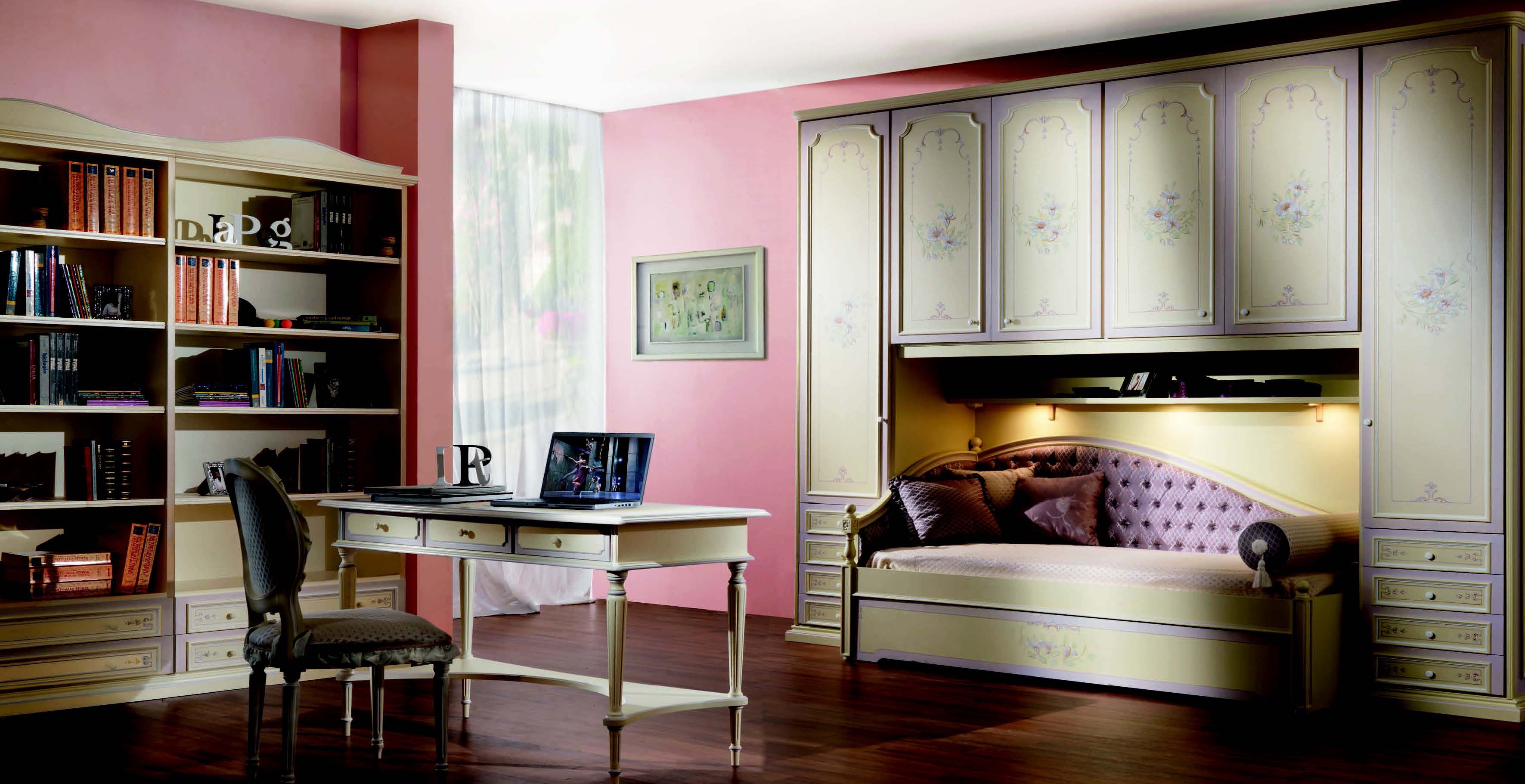 Written Desk Scrivania Tania from the Italian manufacturer Pellegatta. Written, computer Desk handmade. The model with two drawers, one of which serves as a shelf for the keyboard. Top podderjivaut turned legs, figured shelf United-pravovoi. The frame of tamborito, plate with honeycomb on the basis of solid spruce, feet and fronts of drawers made of solid wood, ramino. Finishing is done manually painting in any colour from the range or by a given sample. The model is decorated with hand painting technique of tempera miniatures used 6-8 colors, drawing from the catalog of the factory or on the customer's sketch. The surface is covered with a substance, which protects it from scratches and damages. The series also includes a wardrobe, bed, bedside table, chair.
