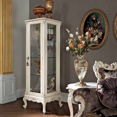 Showcase Casanova from the Italian manufacturer Modenese Gastone. Frame - solid wood, hand carved. The finishing - varnish. Shutters, shelves - glass. The model is made in the Rococo style. Colours in stock.
