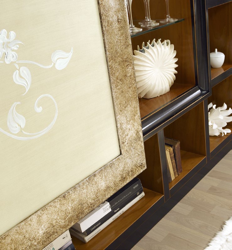 frame, base: solid wood accessories: metal coating: lacquered coating: patina decor: ornament decor: handmade |