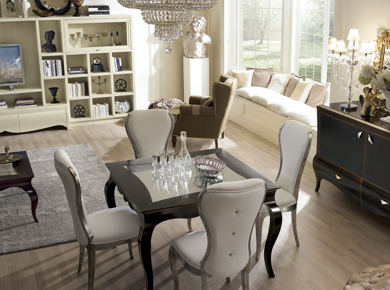 Set for the dining room in shades of black and ivory New Romantic, Arve Style