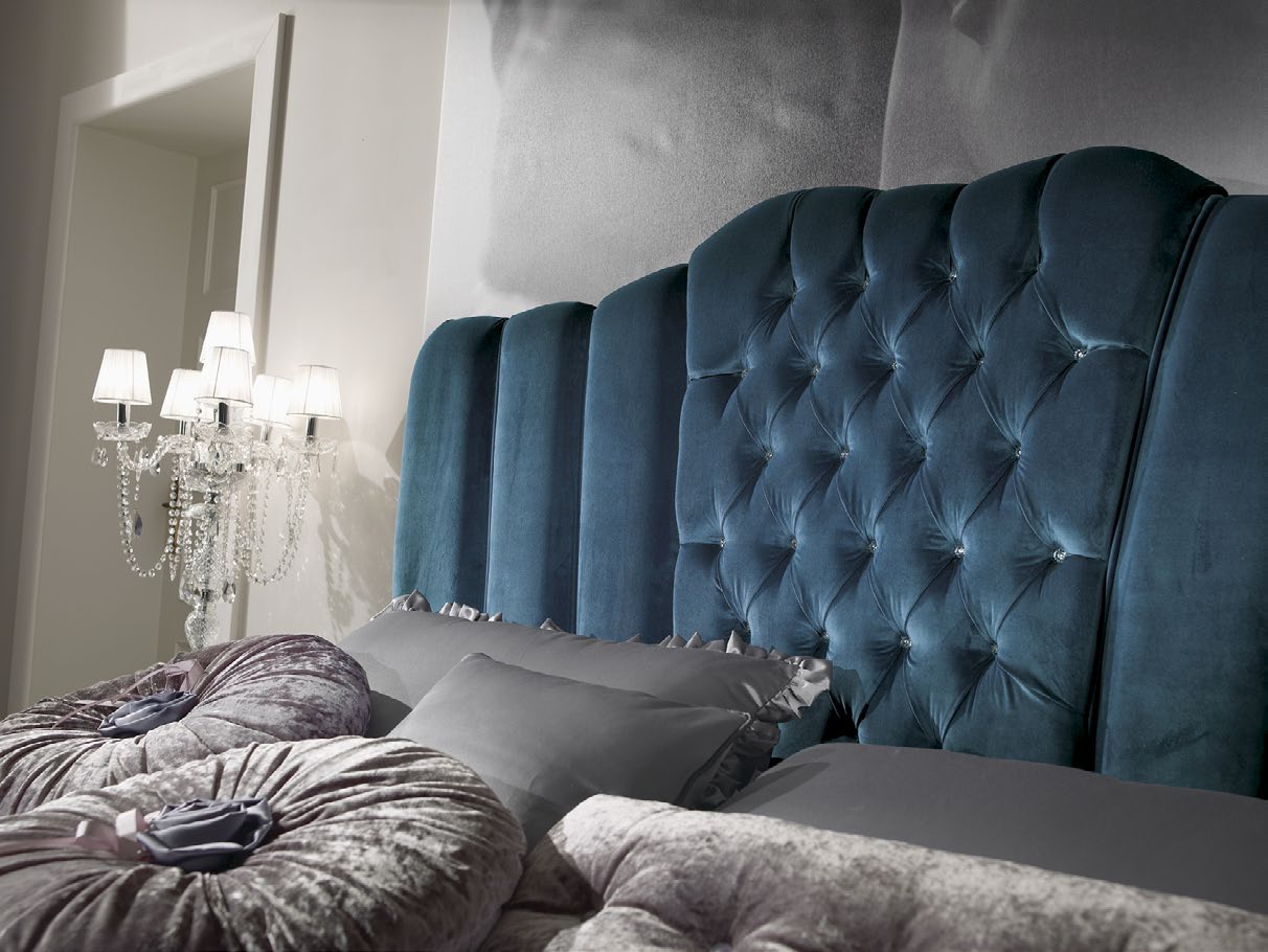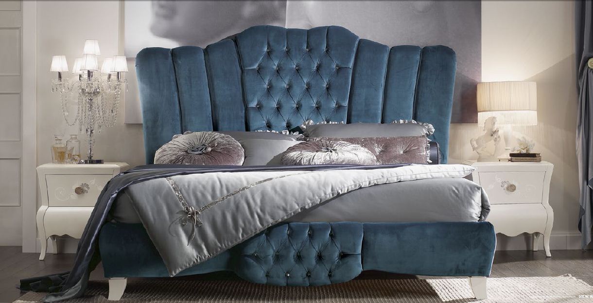 Bed New Romantic from the Italian manufacturer Arve Style. The product with high headboard in a soft upholstery textiles. The headboard is decorated with stitch - Capito. Frame, base made from solid wood. Will be a magnificent element of the interior, fill it with elegance, greatness, create a unique atmosphere.
