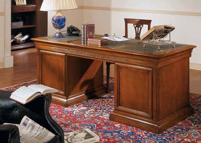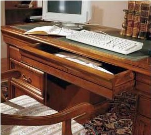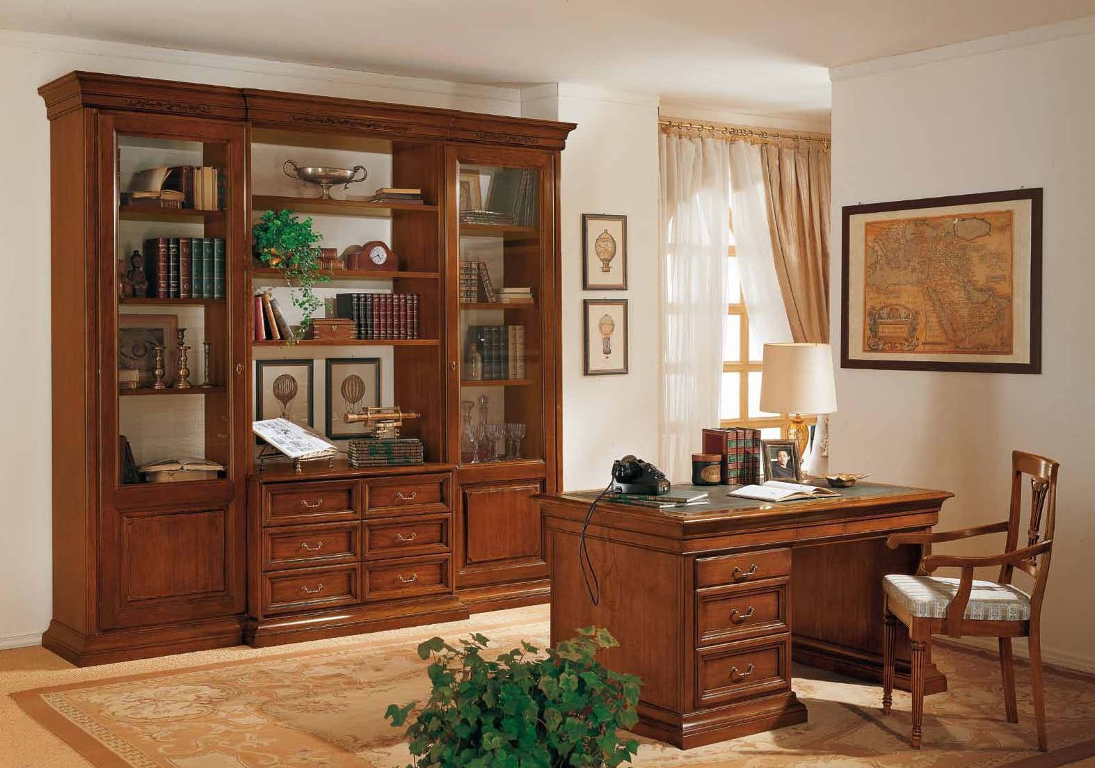 The office (Suite office) from the Italian manufacturer Mirandola Export. The frame is made of wood. Set is made in classic style and consists of a modular bookcase, Desk and chair. The Cabinet has Windows, open shelves and drawers. The table may have different sizes. The top of the Desk has a leather coating. The upholstery - textiles. Products can be adorned with a decorative carved pattern. The perfect choice for Your office.