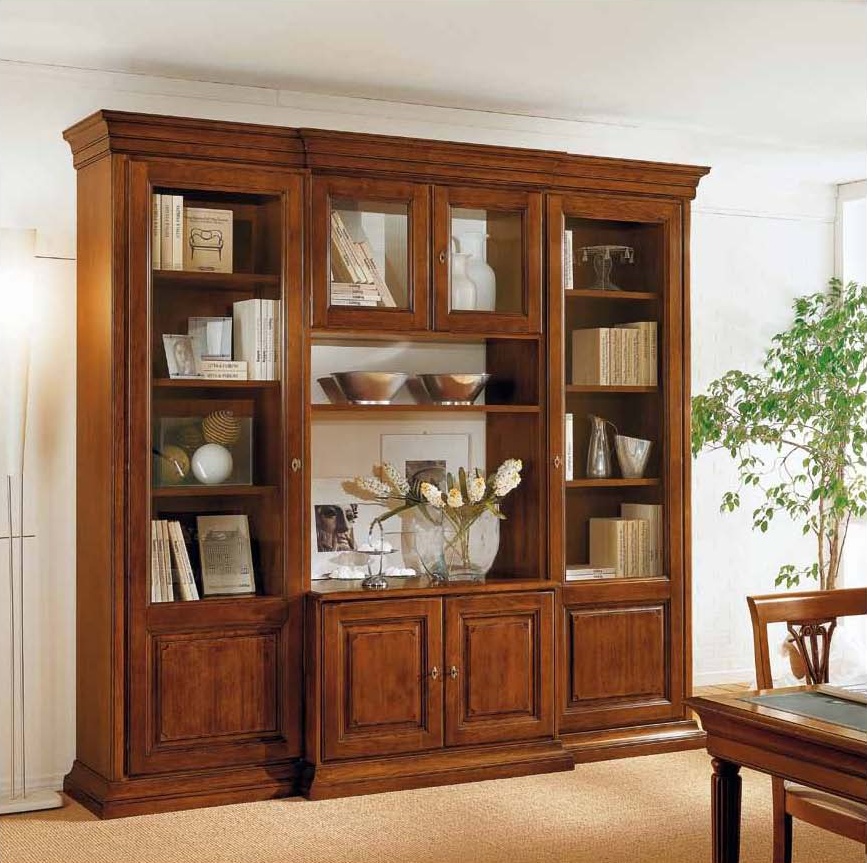 Modular system from Italian manufacturer Mirandola Export. Beautiful modular system is made in a classic style. The frame is made of wood. The product has showcases with wooden shelves inside the cabinets and open compartments. Mirandola Export system will allow You to place and keep in order all Your books and necessary items.
