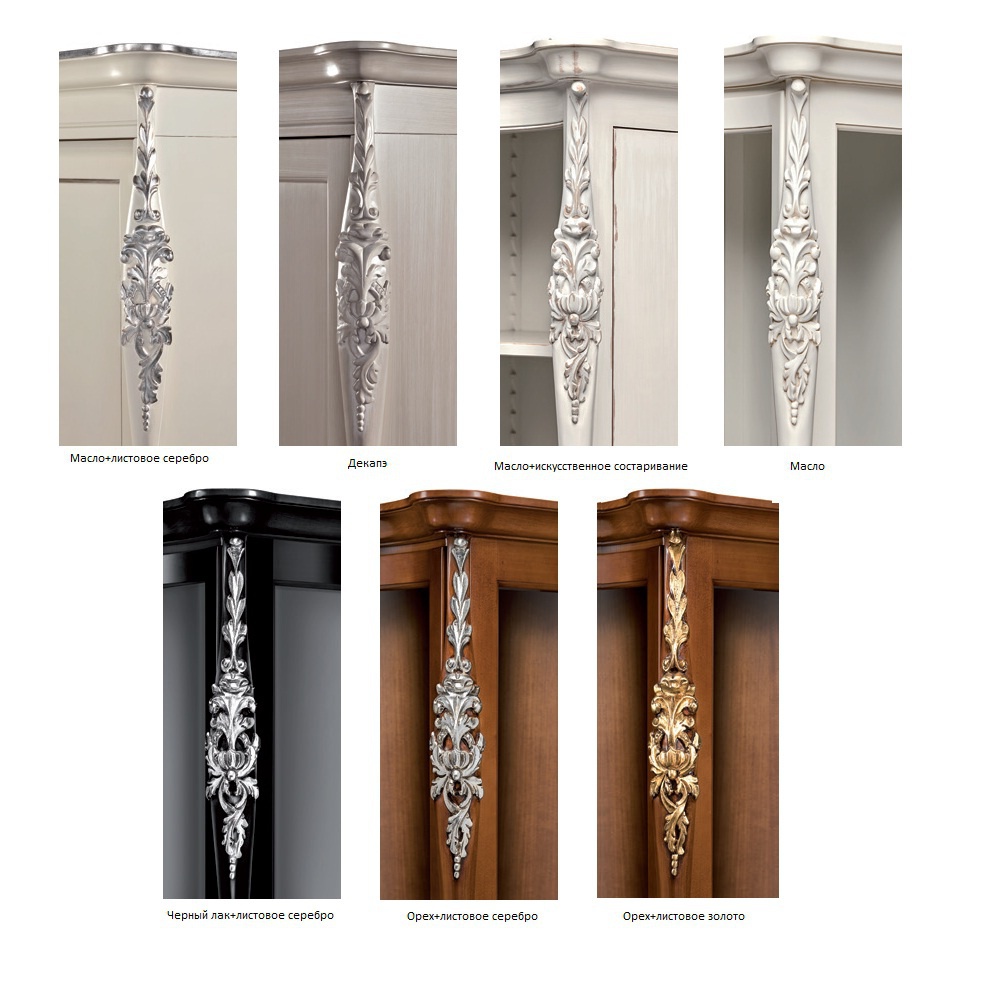 frame, base, countertop: solid wood accessories: metal decor: silver leaf showcase: glass coating: lacquered decor: carved |