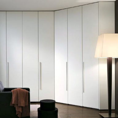 The Tecnopolis wardrobe folding from the Italian manufacturer Presotto. A module for storing clothes of modern style. Quilted facade is finished with matte varnish. The body is made of solid wood with a metal profile. The perfect solution for Your bedroom Suite.