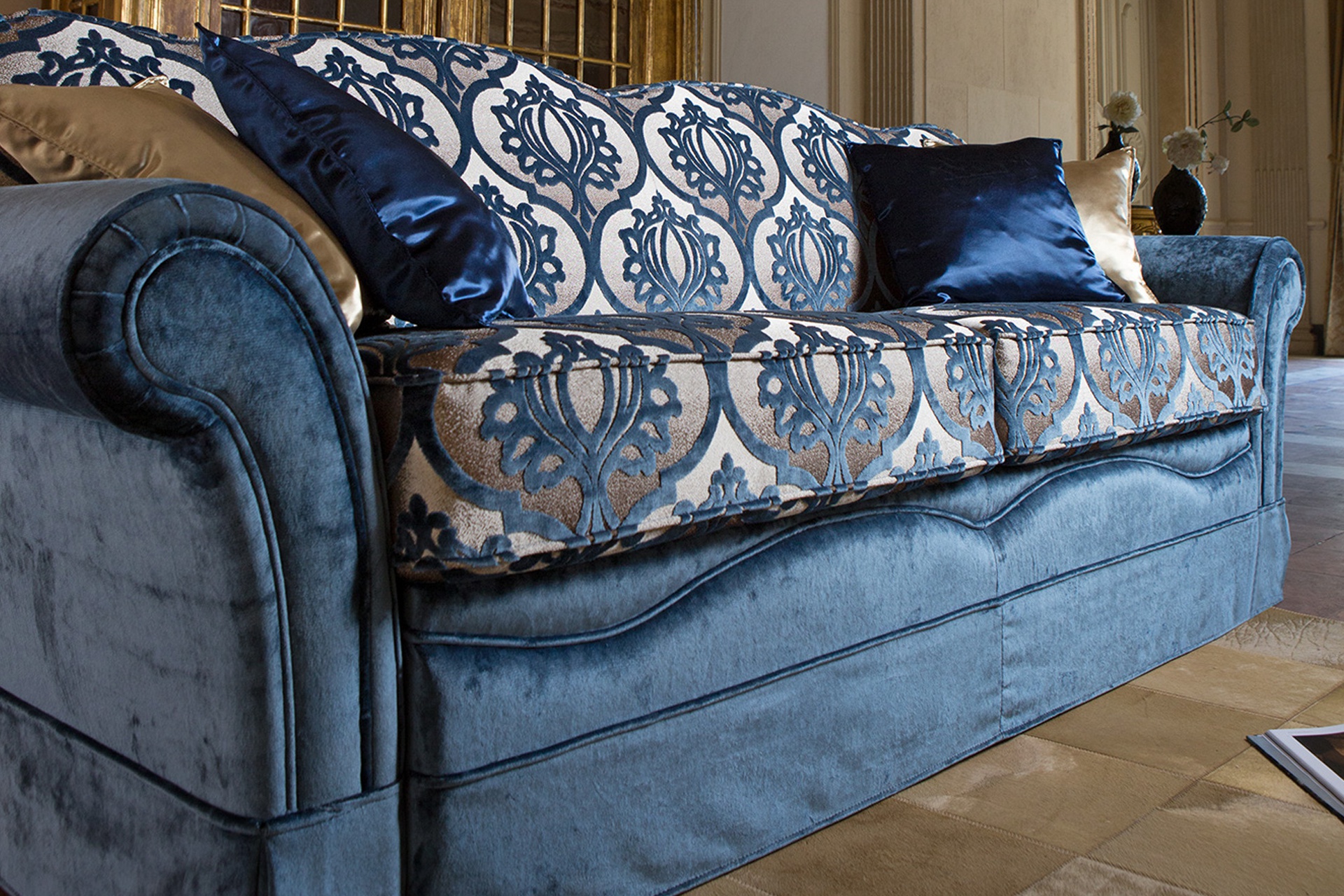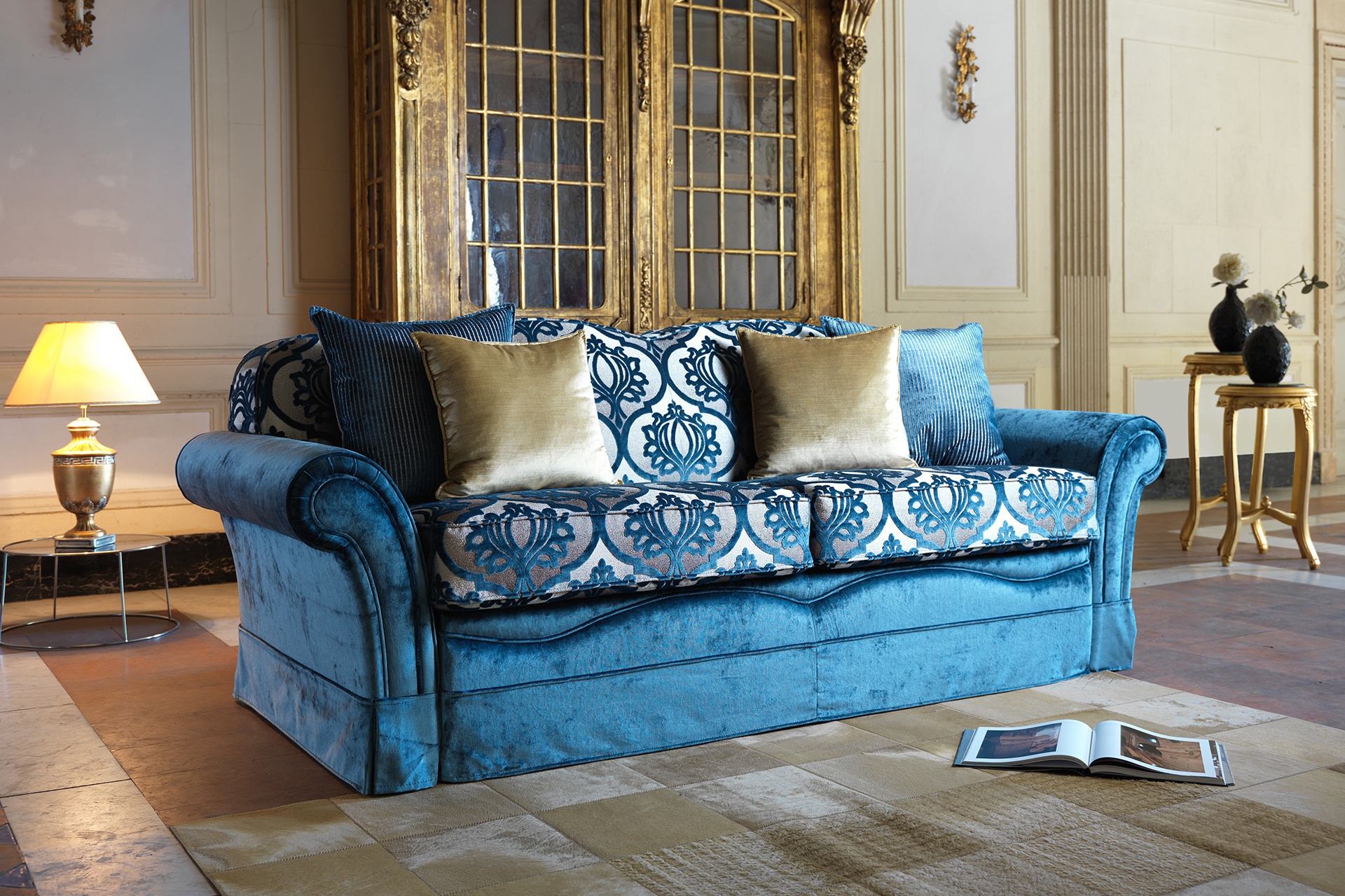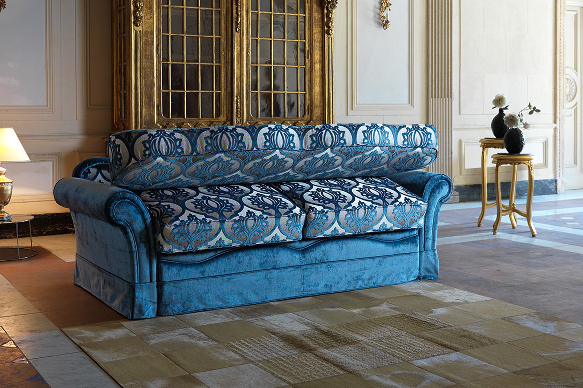 Sofa bed Elektra from the collection Home from the Italian manufacturer Domingo Salotti. Sofa classic proportions with a completely hidden frame will decorate the living room or bedroom. Beta is only available a sofa bed. Made in the style of classic. Models double, triple and quadruple. Material - composite wood, frame made from solid poplar wood or spruce. Steel weld mesh, filling - foam, polyurethane foam and feather. Mattress height of 18 cm in the case of double cotton canvas. The original sofa design equipped with double-triggered mechanism for quick opening. Upholstery textile with a pattern, the bottom of the sofa is decorated with embossed stitching and decorated with braided or fringed skirts. Unfolded sofa bed frames upholstered headboard. Complement a set of decorative pillows. Colors to choose from a collection company.