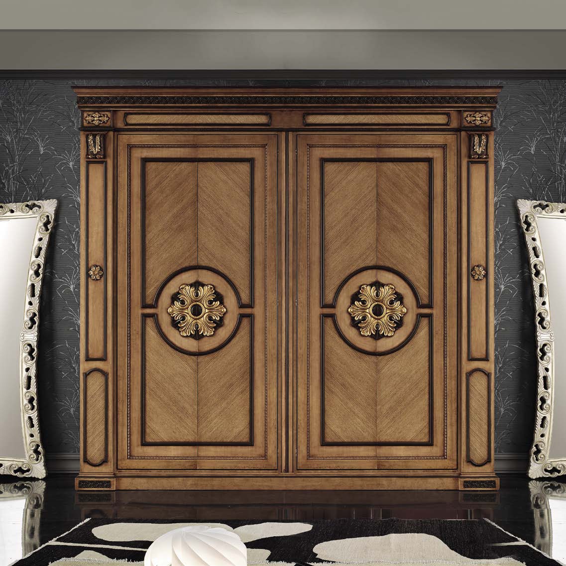 Wardrobe with sliding doors in veneer and gilt Twin, Arve Style