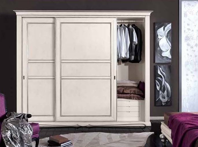 Wardrobe from the Italian manufacturer Mirandola Export. The model is made in classic style. The frame is made of wood, lacquered white and silver lacquer. The Cabinet can be decorated with engraving. The product has two sliding doors and inside space for clothes and drawers. Elegant wardrobe Mirandola Export will perfectly decorate the interior of the bedroom.
