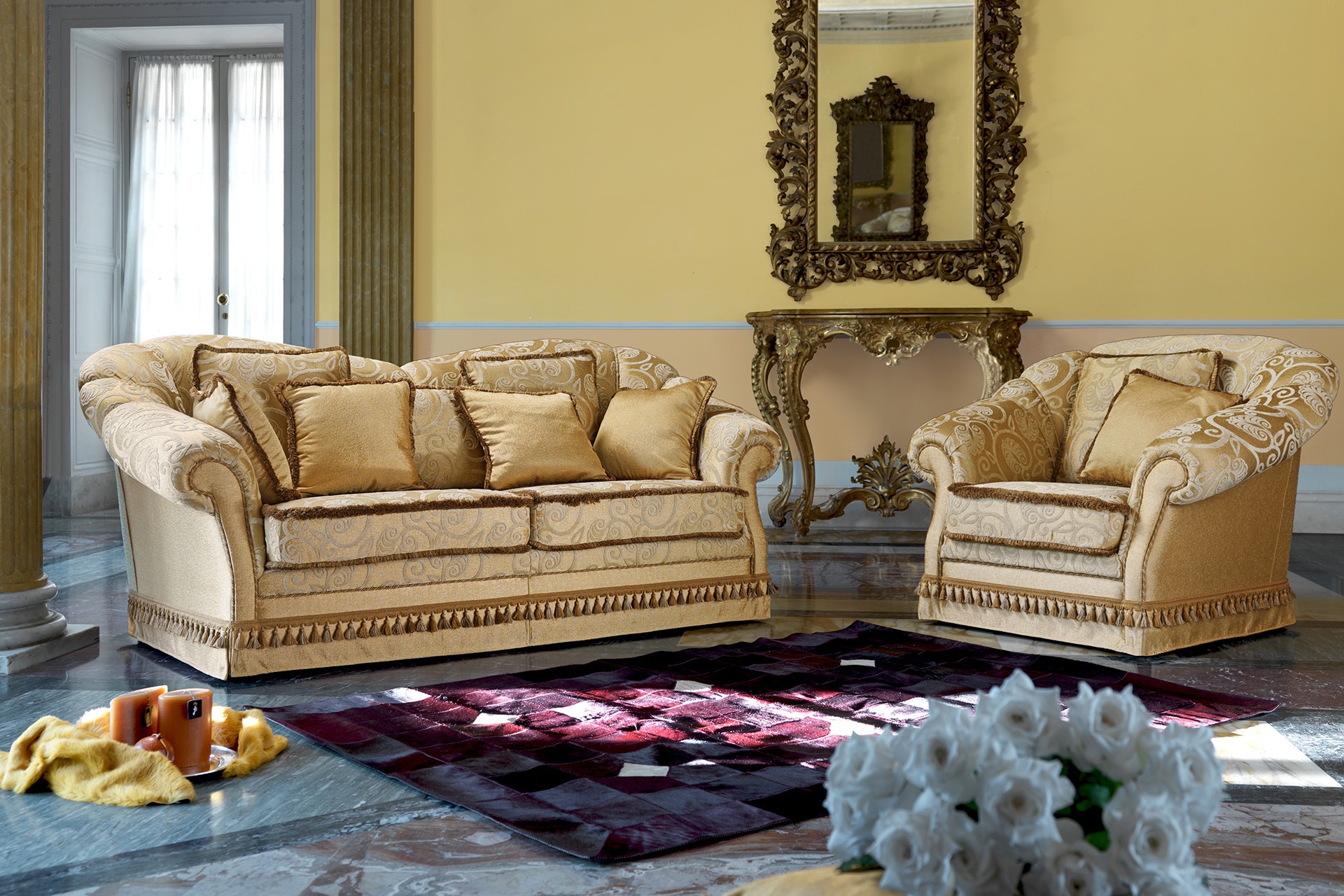 Chair Zeryba from the collection Home from the Italian manufacturer Domingo Salotti. Deep comfortable armchair in Baroque style decorate living room, bedroom or boudoir. The material of the frame - solid wood poplar or fir wood, filler - polyurethane foam of different densities and Dacron. The frame is completely hidden under cloth covering. Upholstery combined. Quilted back smoothly into a soft cuff of the armrests, the seat cushion is trimmed with fringe. The bottom of the chair is decorated skirts and braided fringe. Colors to choose from a collection company.