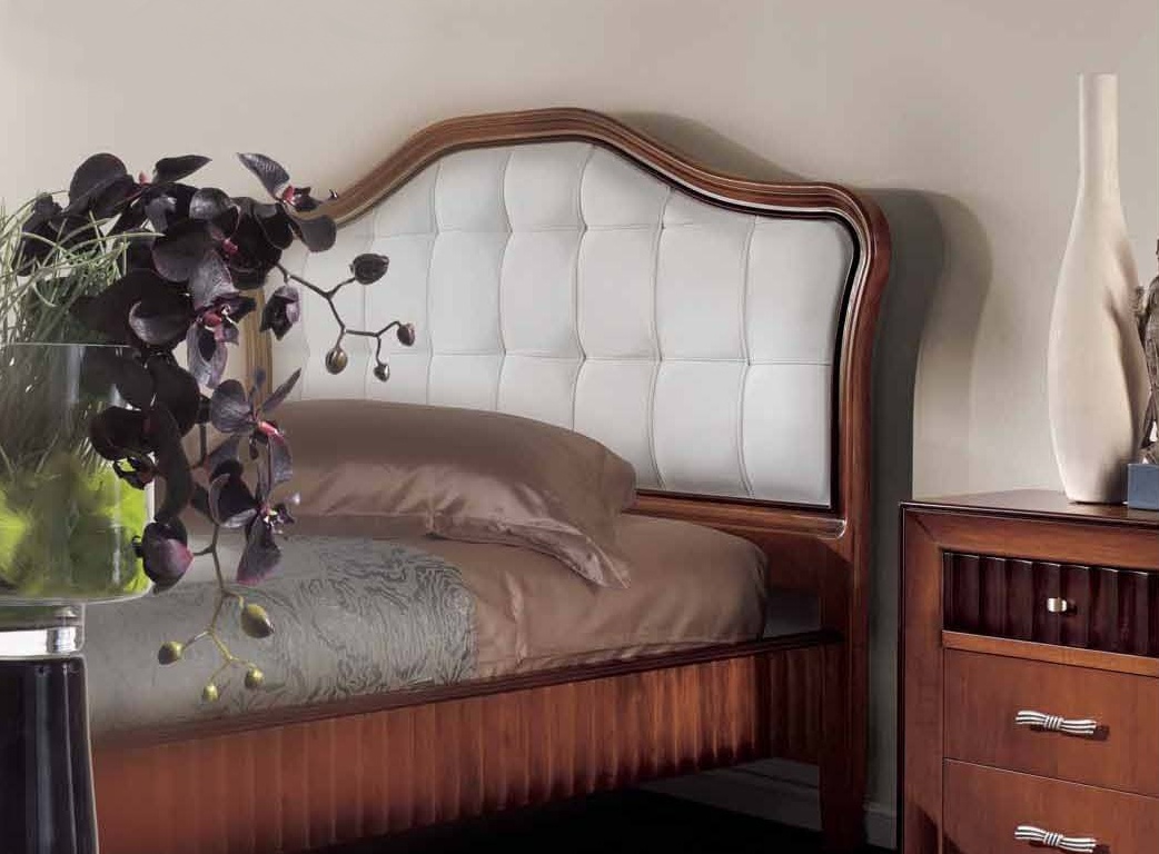 Bedroom (Suite bedroom) from the Italian manufacturer Mirandola Export. Products are made in the classic style. The frame is made of wood, finished cherry, upholstery headboard - leather. Set consists of a double bed with high upholstered headboard, bedside tables with three drawers and chest with four drawers. Mirandola Export bedroom set will create a cozy atmosphere in Your interior.
