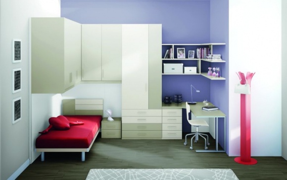 Set for children's Smail P08 from Italian producer Julia Arredamenti. Consists of single beds, storage, shelves, Desk and chair. The frame is made of wood. The varnish finish offered. Color - grey and white. Accessories metal.