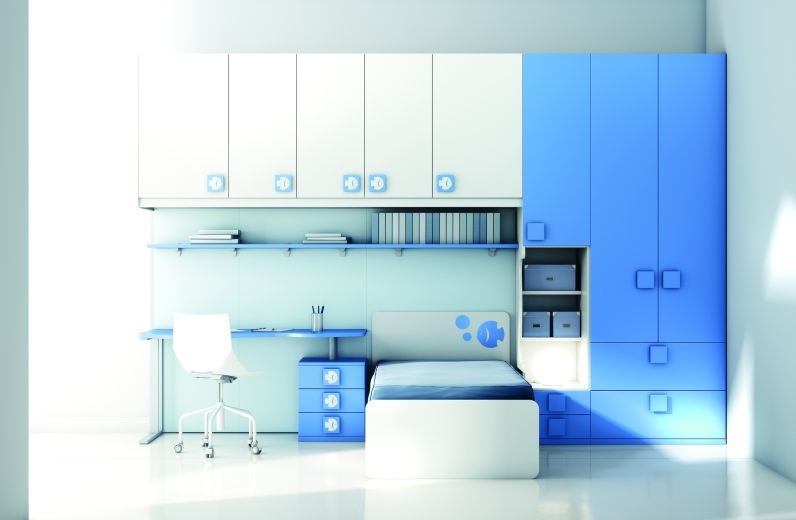 Set for children's Smail P12 from the Italian producer Julia Arredamenti. The model is made in a modern style. The body wood. The lacquer finish is offered in white and blue. Accessories metal. Distinguished by elegance and practicality.