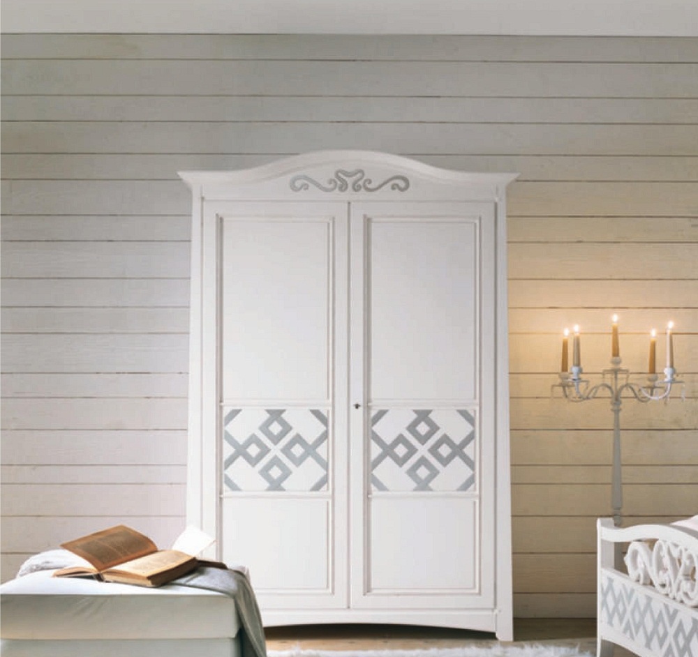 Bedroom set in white lacquer with silver ornament Naima, Arve Style