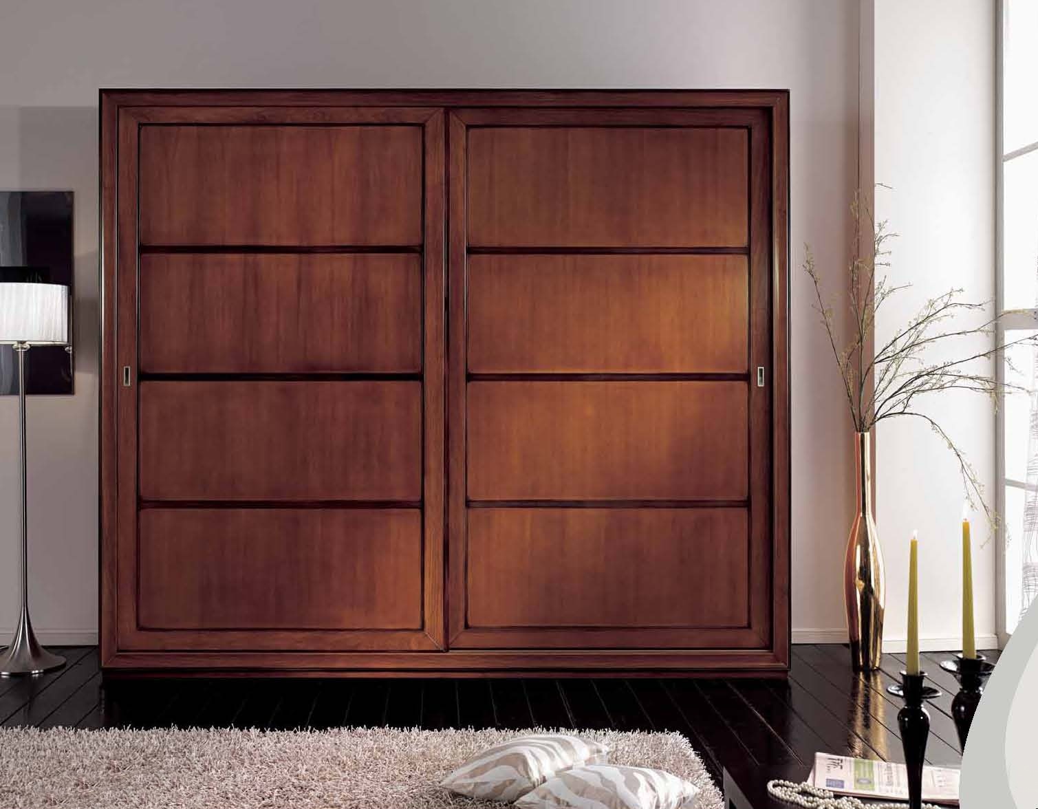 Wardrobe from the Italian manufacturer Mirandola Export. The model has two sliding doors and inside shelves, hangers and drawers. The frame is made of wood and finished in cherry. The product may have inserts of frosted glass on the doors. The style is classic. Roomy and comfortable wardrobe perfectly complement the interior of the bedroom.