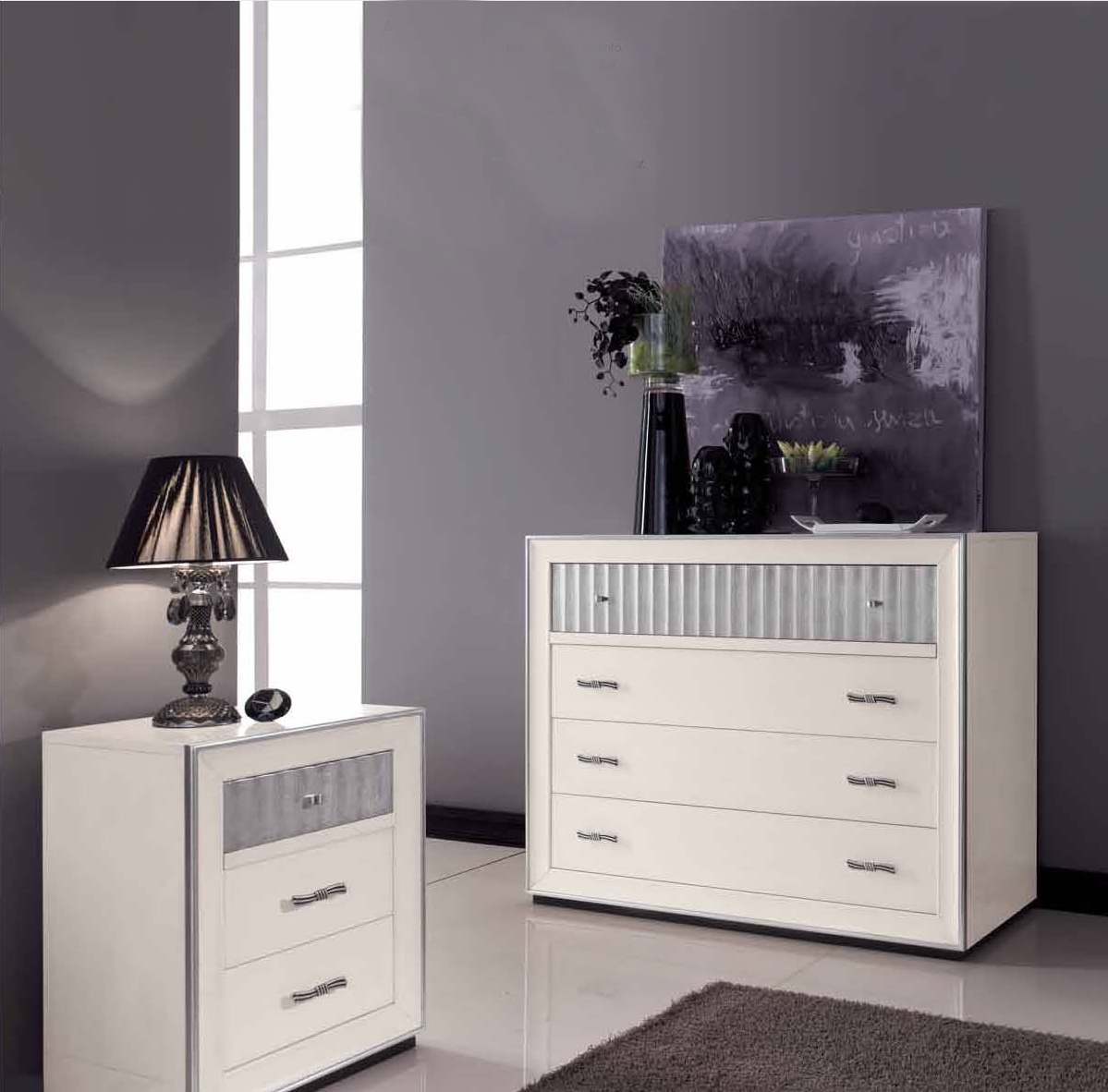 Bedroom (Suite bedroom) from the Italian manufacturer Mirandola Export. Set consists of bed, bedside tables and chest of drawers. Frame and lacquered models made of wood finish silver leaf. Double bed has a high headboard and a drawer for linen. Bedside tables and chest of drawers have drawers. Elegant set of Mirandola Export will decorate Your interior.