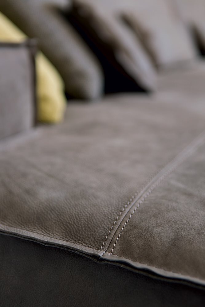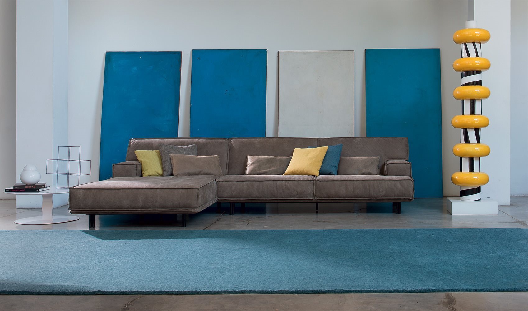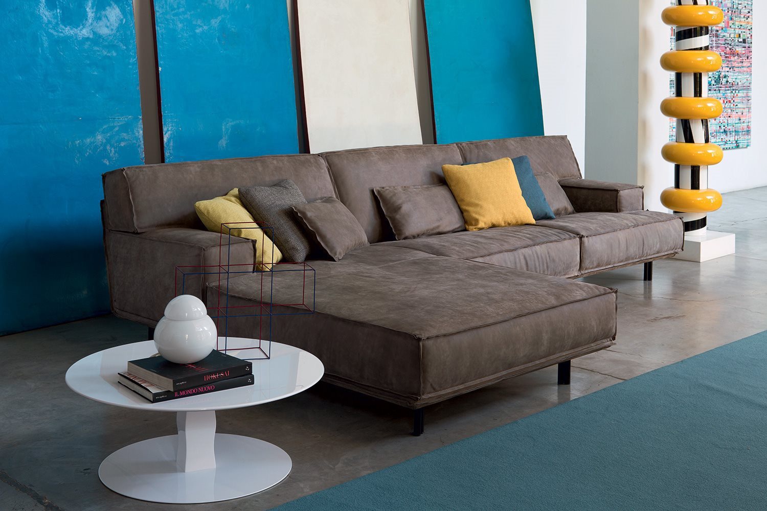 Sofa corner Bridge Italian manufacturer Alberta Salotti. Presents a model of corner sofa for small feet, upholstery leather. The rectangular armrests. Sofa with removable cushions. Original posevnoi upholstery. Color in brown tone. A modern solution for living room.