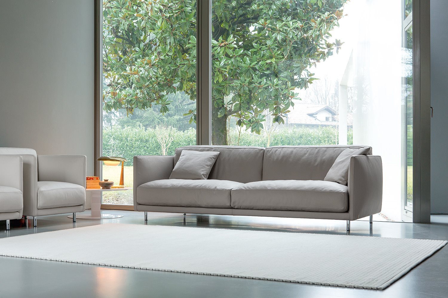 Double sofa Route 66 Italian manufacturer Alberta Salotti. Presents a model of double, sofa. Low metal legs, high quality upholstery made of textile in gray or brown tones. A modern solution for living room.
