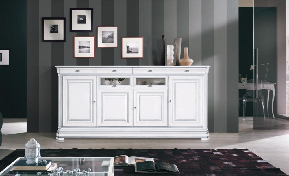 The Amalfi sideboard from Italian manufacturer Arve Style. The manufacturer offers 2 models, with drawers in glass or veneer finishes in lacquer or veneer. The sideboard is made of solid wood. Accessories exquisite metal. A design classic, fit perfectly into the elegant living room, dining room.