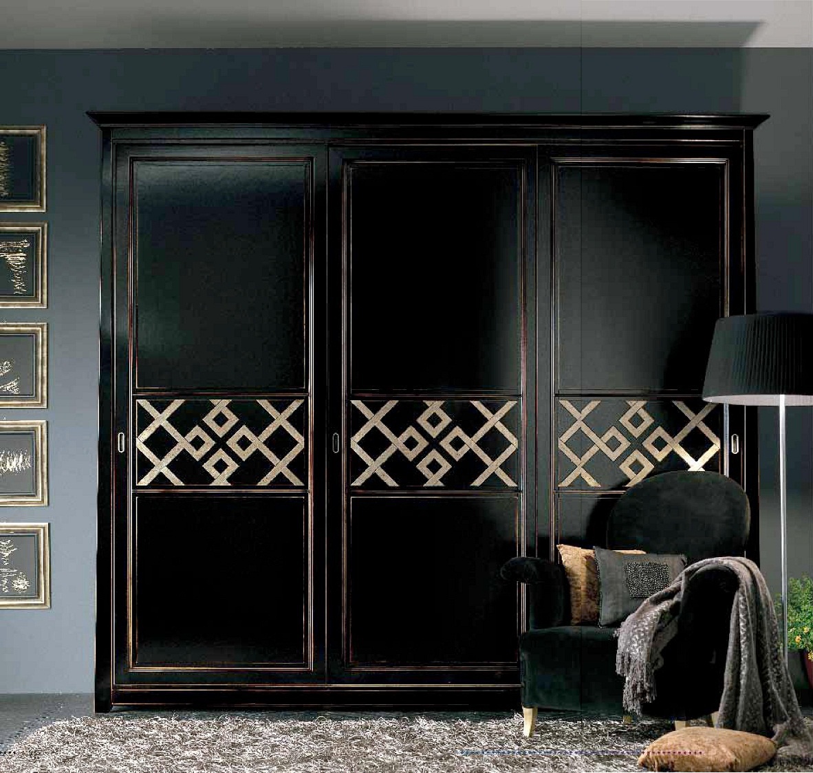 Bedroom set with inlaid silver tone wenge Naima, Arve Style