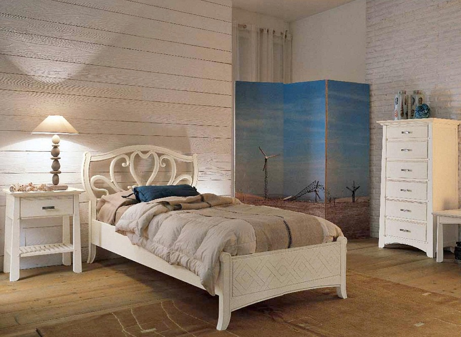Set for bedroom Naima from the Italian manufacturer Arve Style. The set includes: single bed, bedside table, chest of drawers, wardrobe. The base frame is made of solid wood. Finish - white lacquer, choice of finishes in stock. Accessories metal. Graceful carved ornament gives the piece charm. The design is classical. An elegant choice for the decoration of the bedroom.