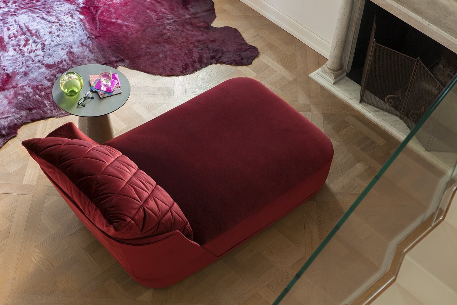 Couch Grace of the Italian producer Alberto Salotti. Presents a model of oval couch fully upholstered with textile. Frame of furniture is made from natural wood, the filler of polyurethane foam.The back is a semicircular shape. Color in purple tone. The perfect solution for a living room in modern style.