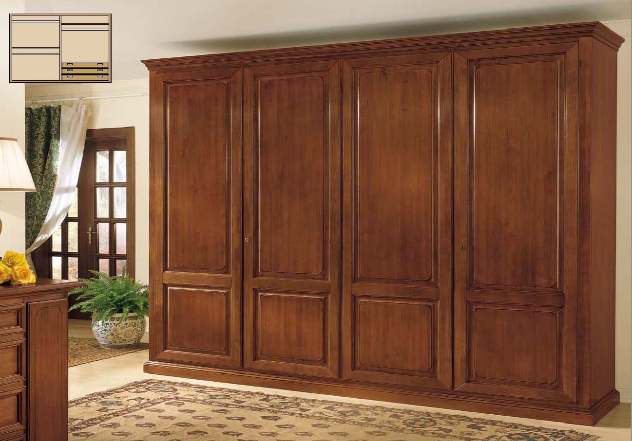 Wardrobe from the Italian manufacturer Mirandola Export. The product is made in a classic style and has a frame made of wood. The Cabinet has four doors, hangers, shelves and drawers inside. Spacious wardrobe Mirandola Export will easily fit into any interior and become your best friend.