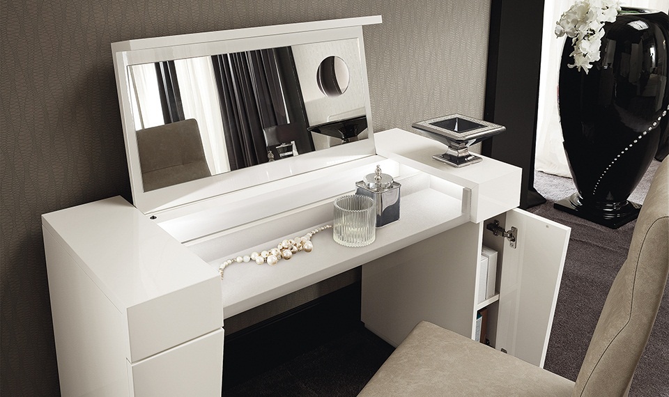 frame, table top: solid wood base, accessories: metal mirror: mirror glass coating: lacquered |
