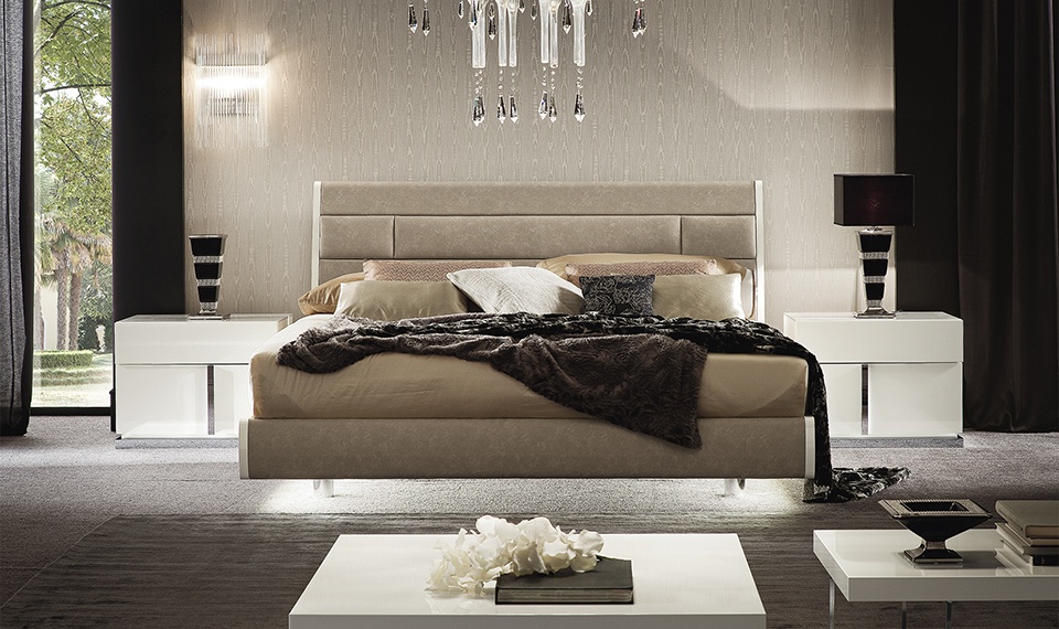 Bedroom set in white lacquer and skin the shade of mocha Canova, Alf