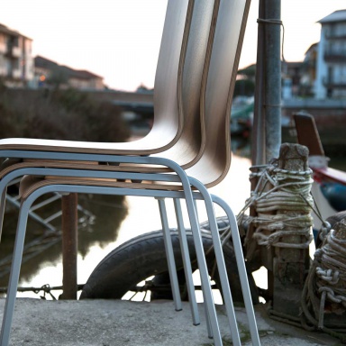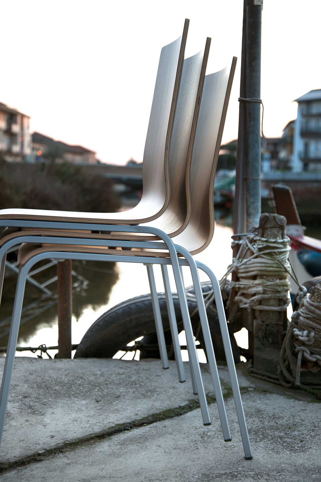 Chair Syn from a collection Contract from the Italian manufacturer Domingo Salotti. Chair without armrests of modern design is practical, durable and ergonomic shape without sharp corners. A constructive solution provides for ease of stacking. Designed for public spaces, comfortable on the terrace, on the boat, in the garden. The frame and legs made of tubular chromed metal, seat and back made from formed sheet of MDF finish laminate. Colors to choose from a collection company.
