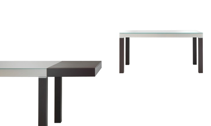 BIG dining table GLASS from the Italian manufacturer Jesse. The legs are made from solid oak, the table top can be tempered glass, glossy finish. The model is designed for dining room in modern style. Colors: blue, mocha, grey.
