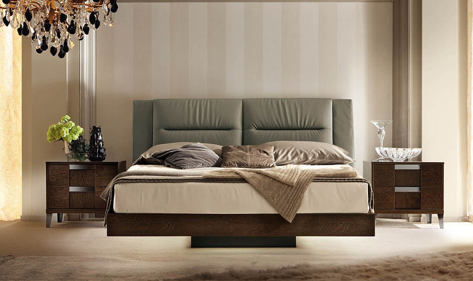 Bed Riviera from the Italian manufacturer Alf. The product on a Central pedestal, which creates the illusion of floating in the air. The bed is made from solid wood. Acts veneer finish with a Matt finish, choice of finishes from the range. Upholstery headboard presents skin in the catalog. The style is modern. The perfect choice for a stylish bedroom interior.