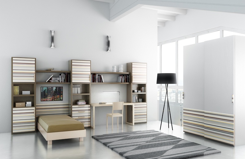 Headsets for child C54 from the Italian producer Julia Arredamenti. The model includes a single bed, Desk, chair and modular system. Material - wood. The varnish finish offered.