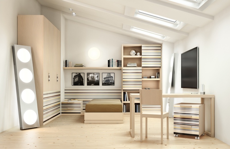 Set for baby C45 from Italian producer Julia Arredamenti. The set includes a single bed, wardrobe, Desk, chair and shelves. The body wood. Finish to be selected from the range of the company. Of the facing metal.