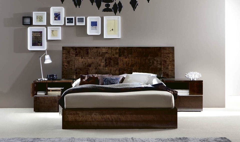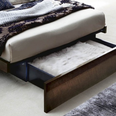 Set to 150 bedrooms from Italian manufacturer Alf. The set includes: bed with high headboard and drawers, bedside tables, 2 drawers, high - with 5 drawers and wide - with 6. Products made of solid wood. Finishing acts veneer with a glossy finish, choice of finishes from the range. Laconic fittings, of metal. The style is modern. A stylish choice for your modern bedroom interior.