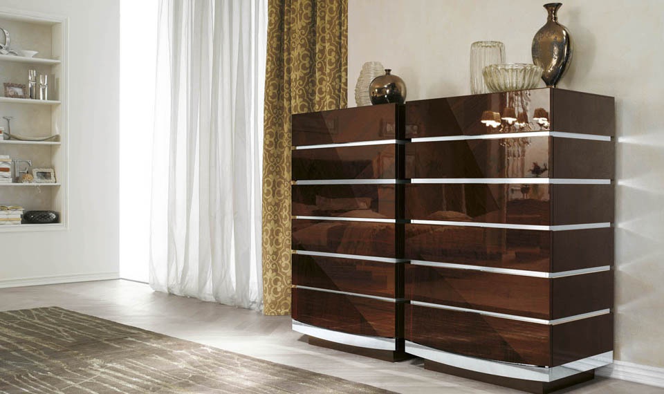 Headsets for bedrooms Garda by Italian manufacturer Alf. Set includes double bed with high headboard on metal supports, a bedside Cabinet, a chest of drawers in 2 versions, mirror wall. Products are made of solid wood finish glossy veneer. Headsets are decorated with metallic elements as hardware, moldings. Colors - in stock. The style is modern.