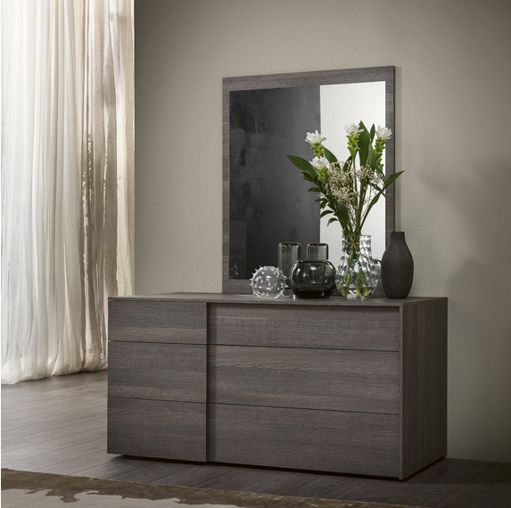 Set for bedroom Ginger Gaia from the Italian manufacturer Alf. Set includes double bed with high headboard in leather, bedside Cabinet, chest of drawers in 2 versions, mirror wall. Products made of solid wood in the finishes brushed oak veneer. Colors - in stock. The style is modern. The headboard is presented in 2 versions, the difference in width.