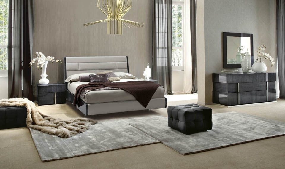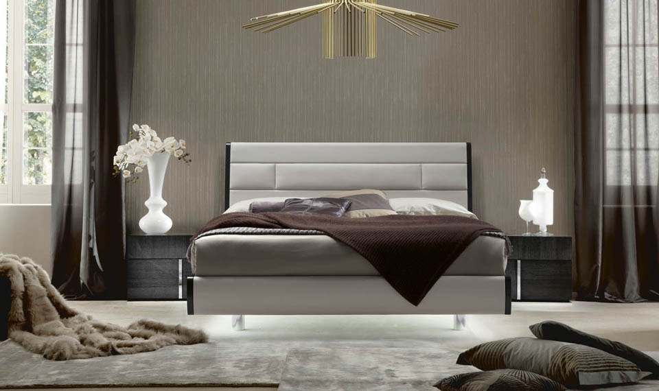 Bed with headboard upholstered in leather Mirage, Alf